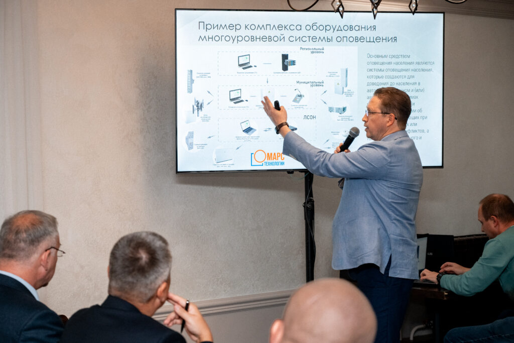 На стратегической сессии он выступил с докладом «Современные программно-аппаратные решения для обеспечения оповещения и информирования населения». Во время выступления Алексей упомянул необходимость создания комплексных систем оповещения населения согласно постановлению правительства РФ № 769 от 17 мая 2023 года. Участники обсудили многоуровневую систему оповещения населения на примере оборудования «МАРС-АРСЕНАЛ», технические средства оповещения (управляющие технические средства, различные оконечные технические средства, мобильныe комплексы), способы оповещения, а также затронули включение систем оповещения от систем мониторинга на примере оборудования «МАРС МОНИТОРИНГ». В завершение выступления были затронуты проблемы и задачи совершенствования технических средств оповещения.